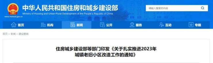 为深入贯彻党中央有关决策部署,落实2023年《政府工作报告》要求,近日,住房和城乡建设部、国家发展改革委、工业和信息化部、财政部、市场监管总局、体育总局、国家能源局印发《关于扎实推进2023年城镇老旧小区改造工作的通知》,部署各地扎实推进城镇老旧小区改造计划实施,靠前谋划2024年改造计划。
