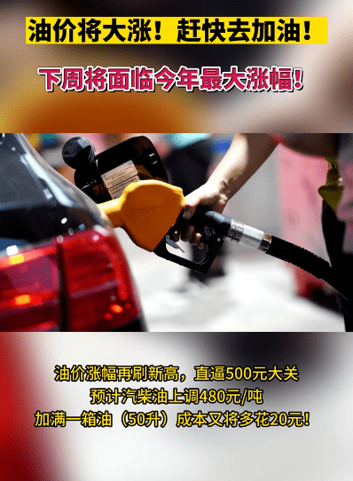 油价再刷新高,直逼500元大关,当前预计汽柴油上调480元/吨,折算上涨最高达0.41元/升,加满一箱油(50升)成本又将多花20元。