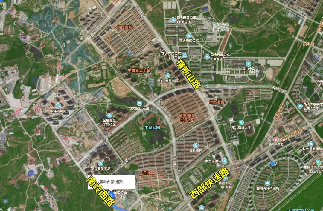 老龙头路以东,长城以西,铁路以南,渤海以北