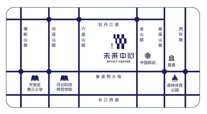 未来中心位于开发区秦皇西大街以北,金山北路以西,毗邻孟营广缘、秦皇新天地等商圈,畅享繁华;邻近森林体育公园、秦皇岛中医医院等生活圈,享受生活极尽便利;并有河北科技师范学院开发区校区、燕大科技园、开发区第四中学辐射,人文、科技氛围浓厚。