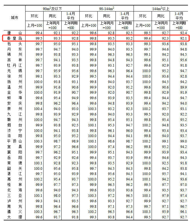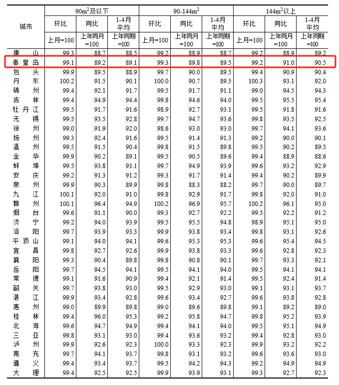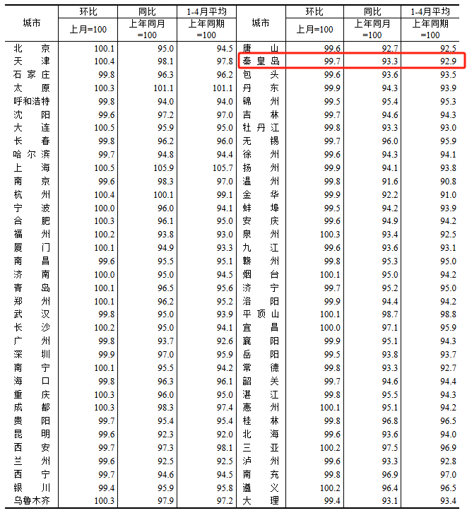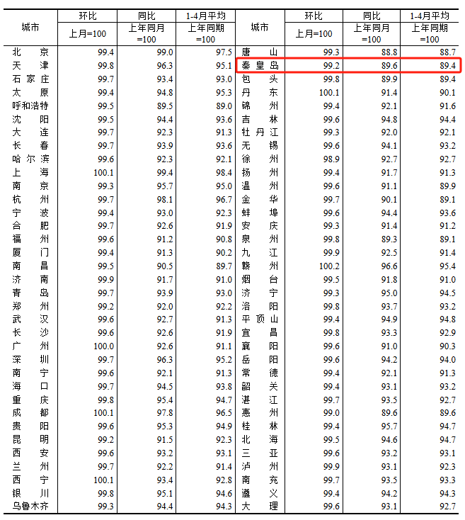 根据国家统计局数据,秦皇岛4月新房与二手房房价依然处于下跌水平,但跌幅均有所收窄,释放回暖信号。