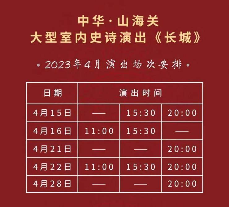 据了解,近年来,山海关区持续推出长城文化体验产品,繁荣文化旅游市场,助推旅游经济高质量发展。为了让市民和游客能够大饱眼福,至5月31日前均有演出安排,市民可选择合适时间前往观看。