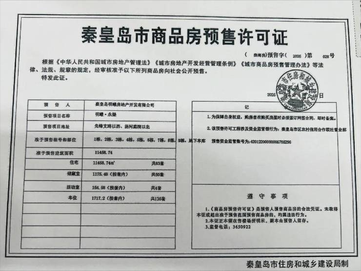 (秦海房)预售字(2025)第026号