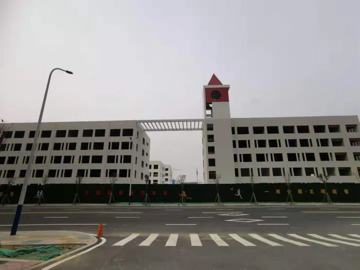项目采用新型建筑方式钢结构建造,特点是节能环保、抗震,目前,主体框架工程已经完工。已经进入寒冬,工地依旧没有停工,工人们正在做楼墙板安装、外管网施工。按照施工计划待明年气温回暖可进行内外墙抹灰和室外操场施工,预计明年下半年可交付使用。