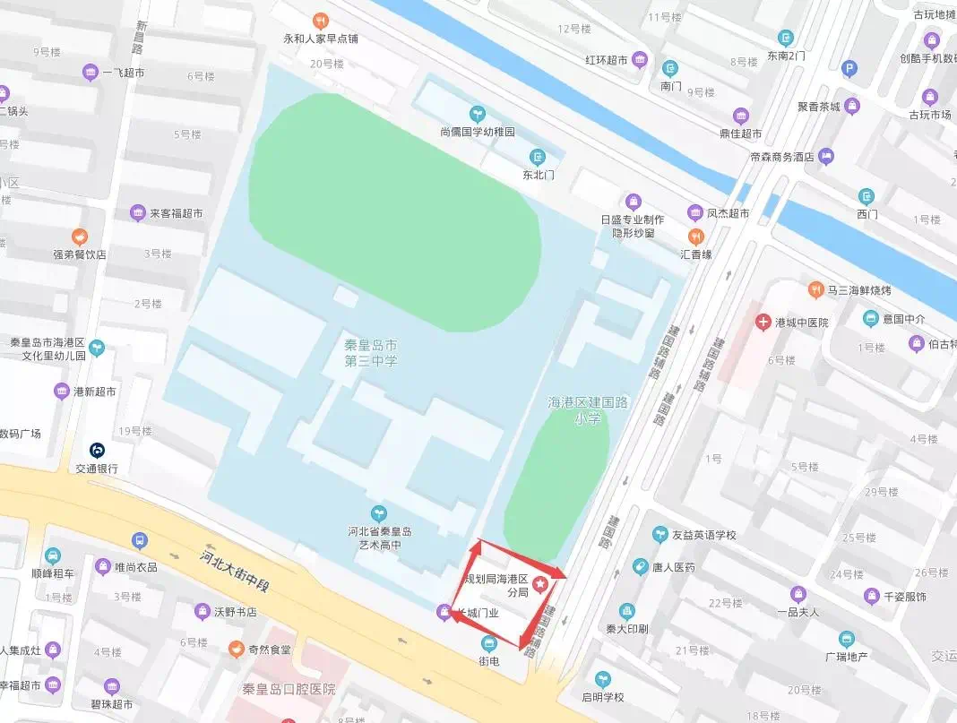 改造部分位于原海港区疾控中心和海港区资源规划局,南起河北大街,北至建国路小学,东起建国路,西至市三中;新建部分位于秦皇岛市第三中学校园内东侧。