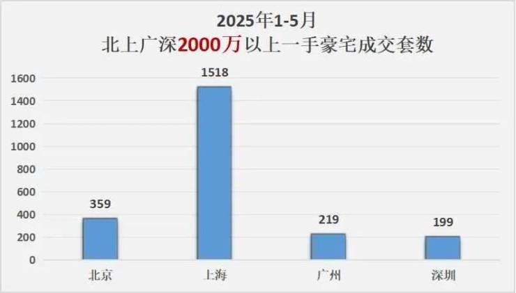 数据显示,5月上海新房豪宅成交378套,环比飙升168.08%。截至5月25日,今年上海总价3000万元以上的新房成交就高达897套,几乎与2021-2023年“年度水平”相当。