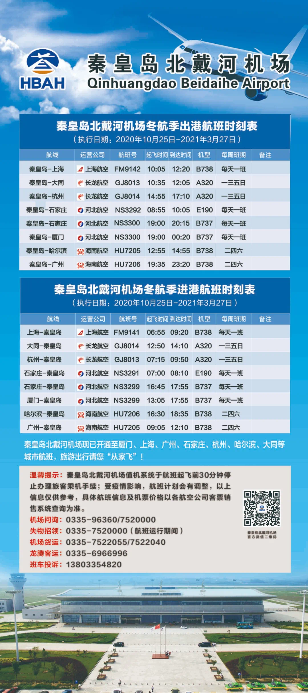 此外,秦皇岛机场重点推出“从家飞”服务,旅客从秦皇岛机场出发,经石家庄正定国际机场、上海浦东国际机场可中转至重庆、长沙、桂林、贵阳、昆明、合肥、深圳、福州、珠海、南宁、海口、三亚、西安、兰州、银川、包头、拉萨、乌鲁木齐、呼和浩特等60多个国内城市。
