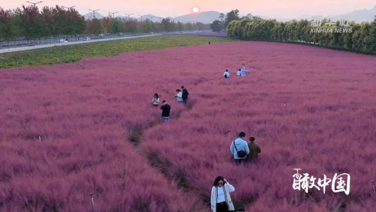 金秋十月,河北省秦皇岛市抚宁区宁海大道西段,层层叠叠的粉黛乱子草迎来观赏期,一株株粉黛乱子草随风摇曳,泛起层层的粉色波浪,如梦幻般的“童话世界”,让人流连忘返。
