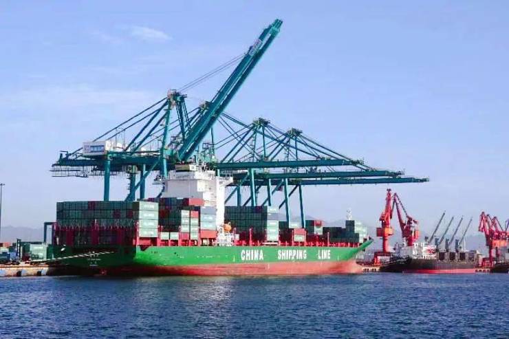 11月9日,“新郁金香”轮船在秦皇岛港集装箱码头鸣笛起航,搭载着装有家具、建材、农产品、电子产品等货物的集装箱驶向韩国仁川。