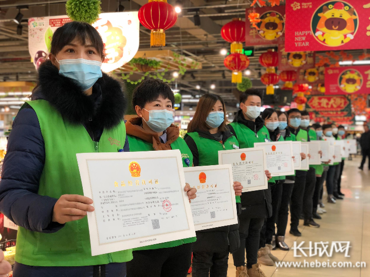 企业工作人员开心地展示收到的食品经营许可证。长城网记者 祖迪 摄