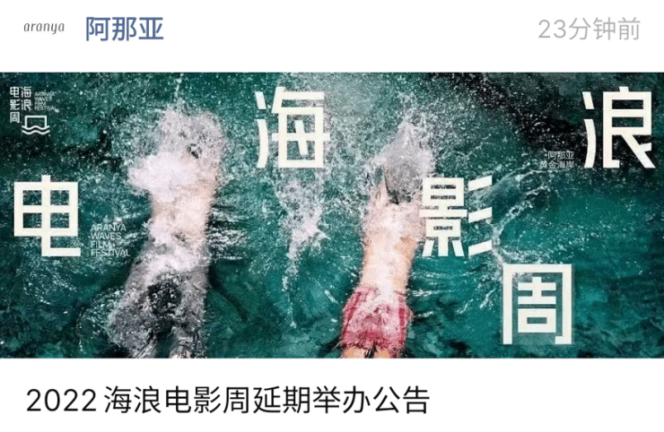 官方较新公告:基于当下疫情防控状态的考量,为减少聚集性活动,我们审慎地决定暂将2022海浪电影周推迟至10月举办。