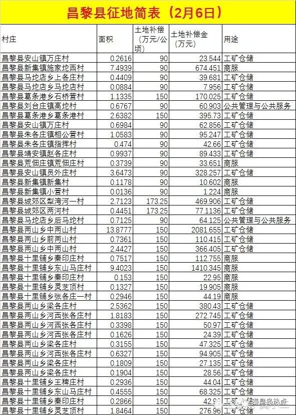 秦皇岛昌黎县国土资源局2月6日公布两批“征收土地和补偿安置方案公告”,将在26个村征地60.8294公顷(合912.441亩),土地补偿总金额达到8174.7596万元。