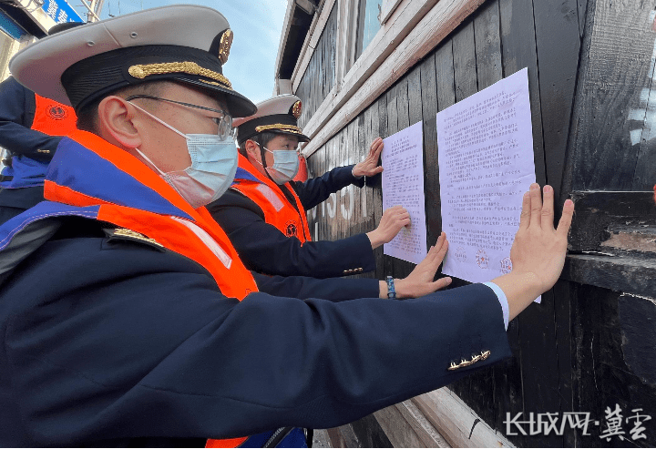 秦皇岛海事局执法人员在渔船上张贴《关于提高水上交通安全意识 防范商渔船舶碰撞的告知书》。长城网·冀云客户端记者 祖迪 摄