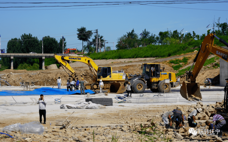 目前,橡胶坝已经安装完成,施工方正在进行周边及观景台建设。