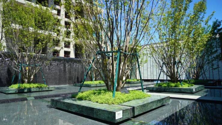 另外,垂直生态空中花园覆土种植绿植,让建筑拥有会呼吸的外立面,还具有弱化热岛效应,实现防尘降温的作用。