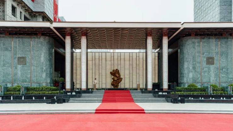 国宾级显赫门庭宽108米、高10.3米,立面采用进口高定普拉达绿奢石与白雪公主玉石,地面铺设安哥拉黑石,石材全部经12道手工抛光,敬呈奢宅归家气场。