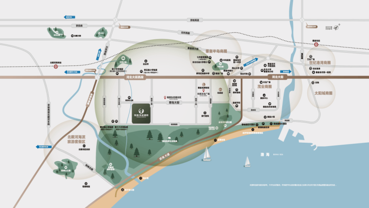 周边河北大街、西部快速路等城市主干道贯穿,交通畅达;拥揽万亩原生态森林,推窗见森海,生态环境优越;秦皇岛博物馆在侧,规划建设大剧院、科技馆等文化配套,人文氛围浓厚。