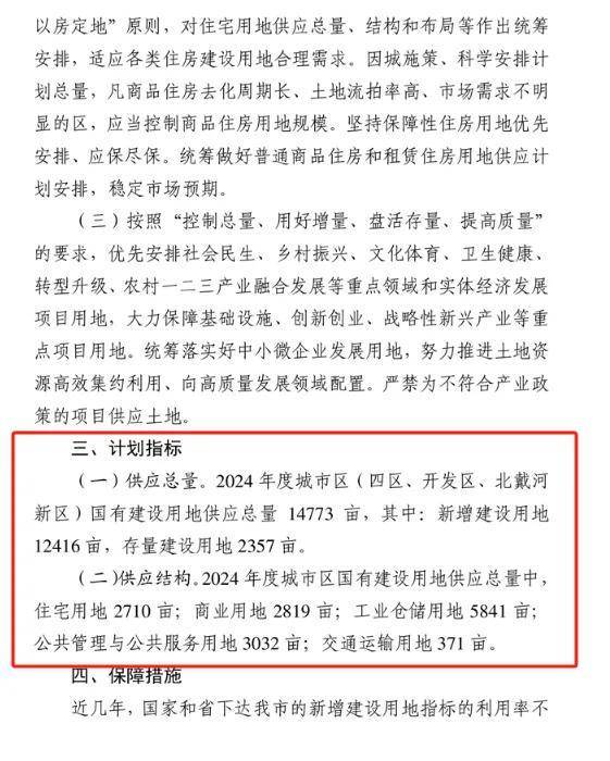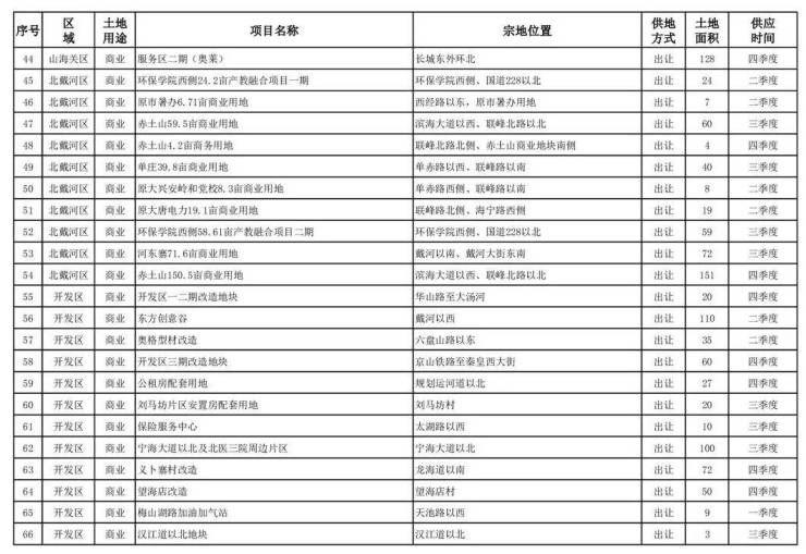 近日,秦皇岛市自然资源和规划局发布《秦皇岛市2024年度城市区国有建设用地供应计划》。今年4个城市区(含开发区、北戴河新区)国有建设用地供应总量14773亩(约9848667㎡),其中包含住宅用地2710亩(约1806667㎡),商业用地2819亩(约1879333㎡)。
