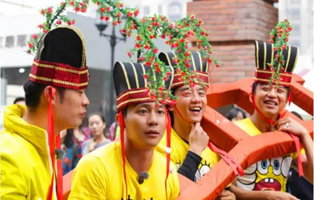头戴诸葛帽吃西瓜!30秒内吃到诸葛帽上的小西瓜就有奖励哦~