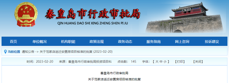 一、同意建设范家店返迁安置房项目。建设单位为秦皇岛市泽润房地产开发有限公司。