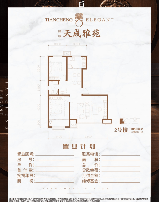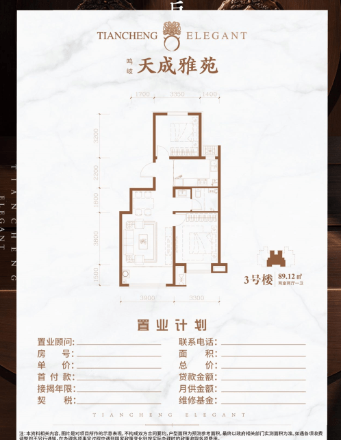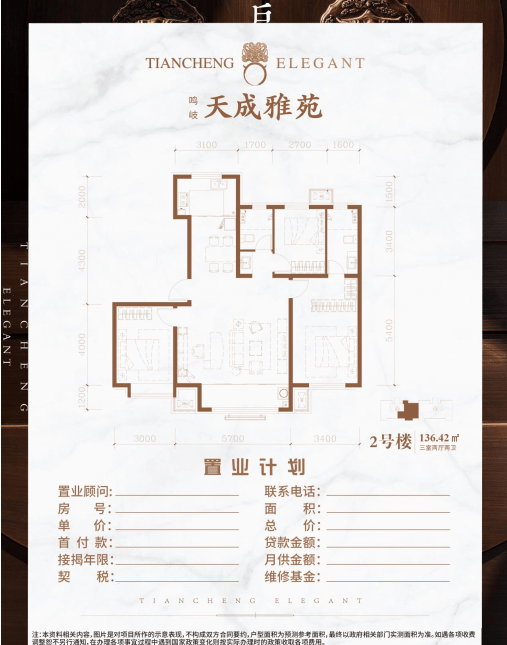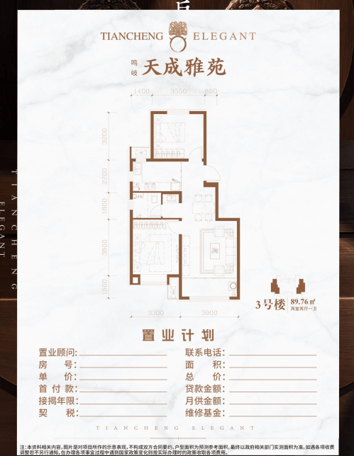 天成雅苑由89平米至135平米多元户型组成,户型格局堪称经典,皆为大开间短进深设计,确保屋内有充足的采光和通风,均为一梯两户70年大产权,充分让业主享受别墅级的待遇。