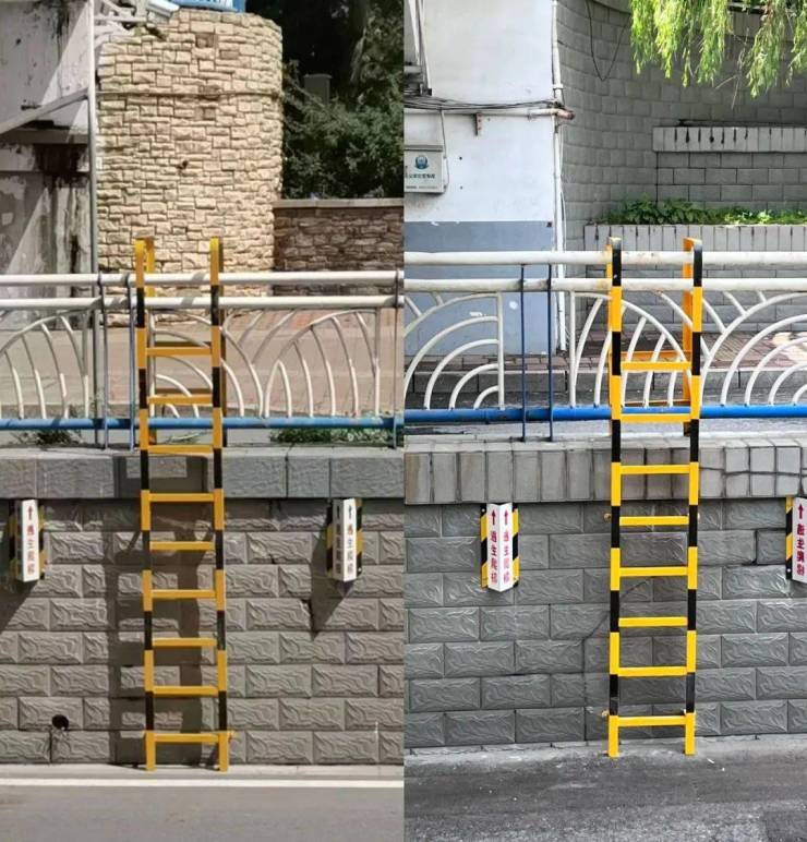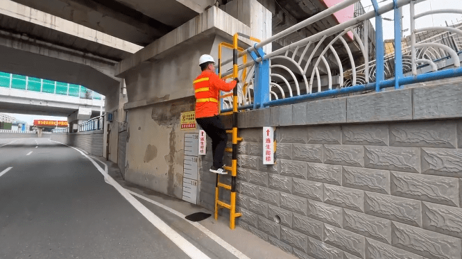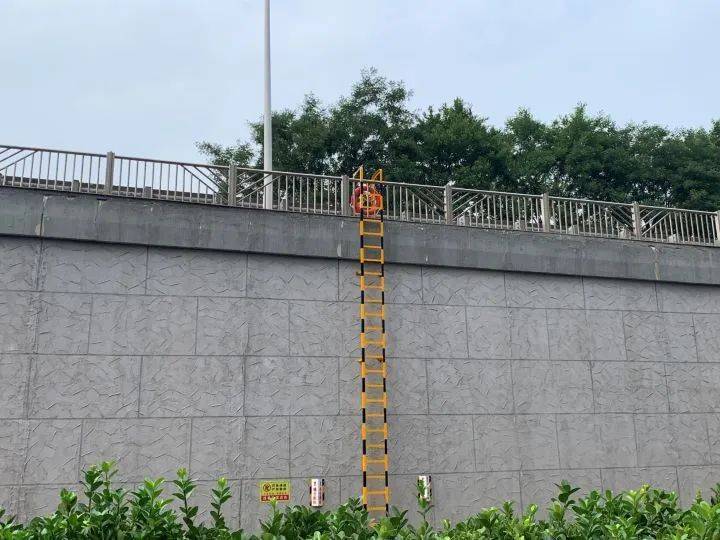 地道桥新安装的爬梯,顶端还配备了救生圈。
