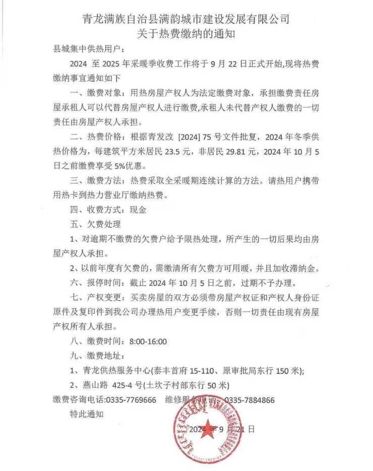 秦皇岛一地提前缴纳取暖费享5%优惠!