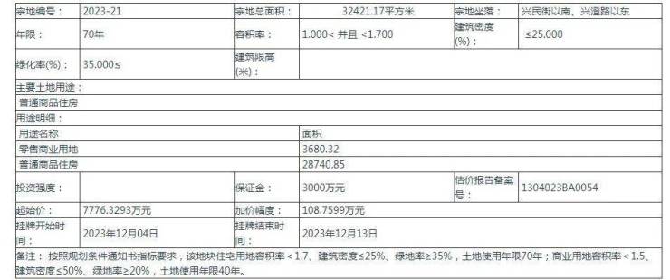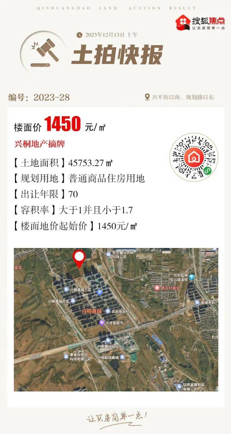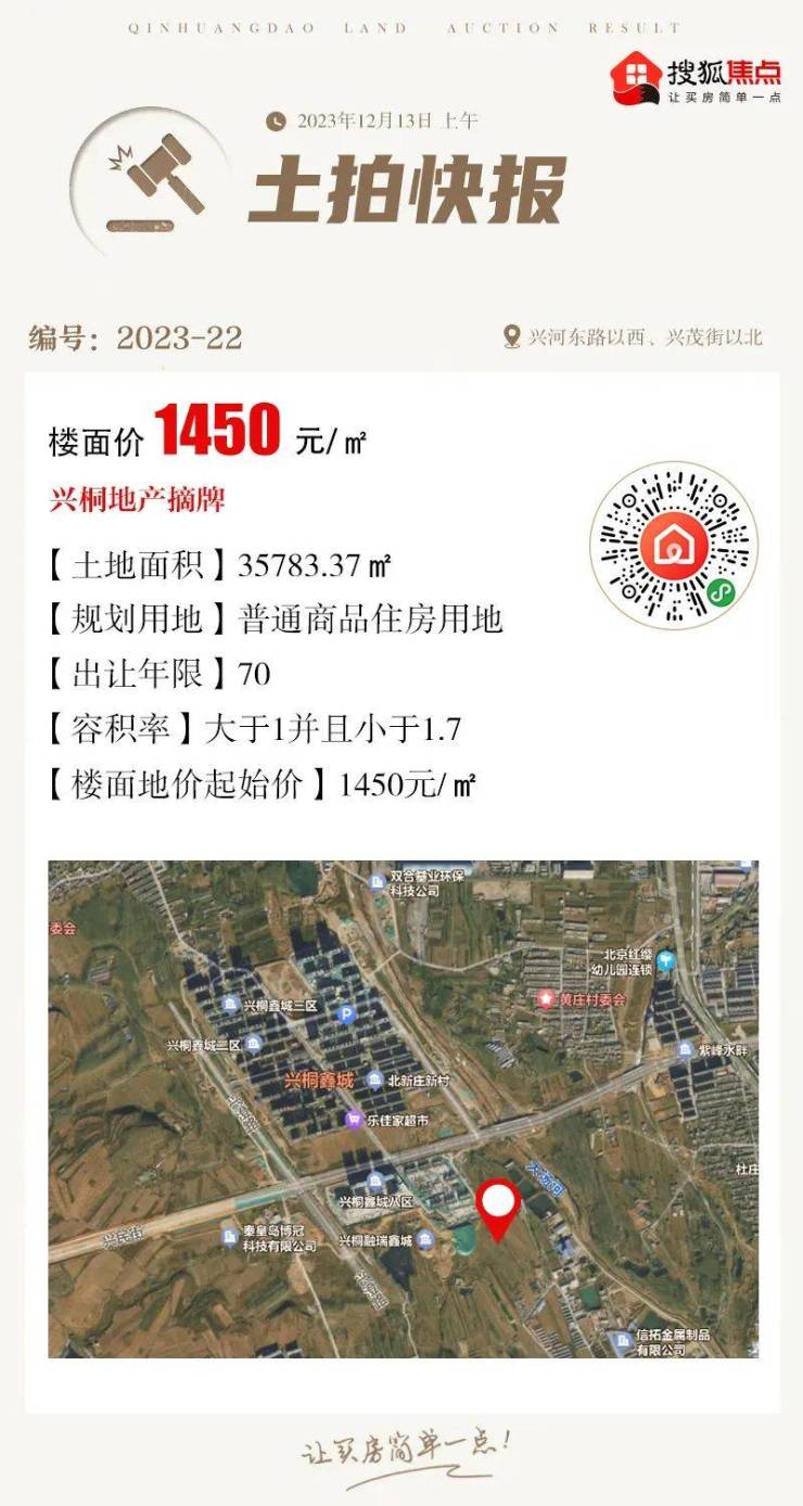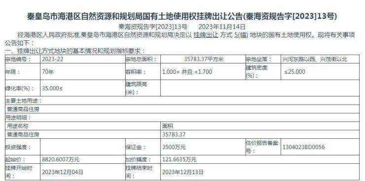 虽是寒冬,但年末的土拍市场依然火热。今天,兴桐地产成功竞得北部五宗住宅地块,土地总成交价4.6亿元,最高楼面价1450元/平米,最低楼面价1260元/平米。另外,从中国土地市场网已发布的信息显示,元旦之前秦皇…