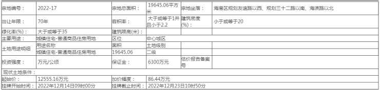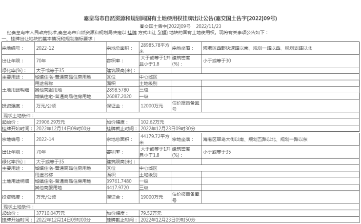 近日海港区发布6宗住宅用地出让公告,其中5宗位于西部板块,1宗位于道南片区,出让总面积达76.45万平米,涉及金额35.47万元。