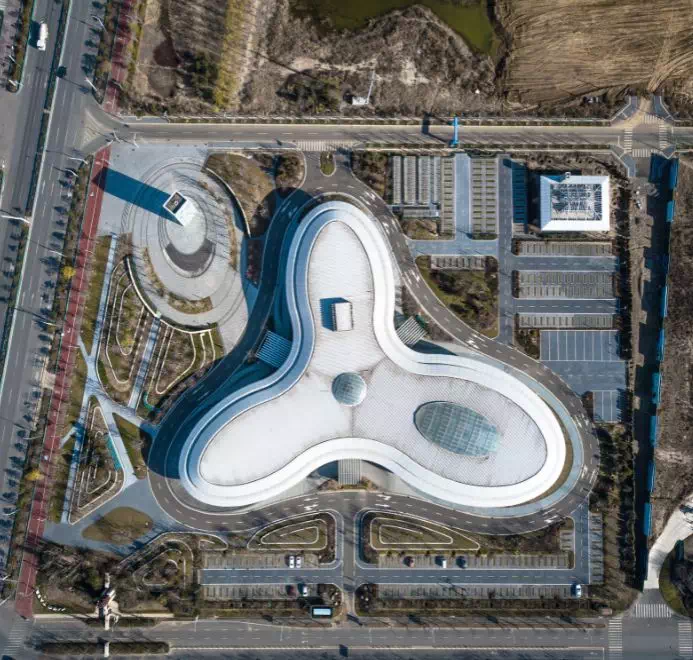 于是设计师们在这里片海岸,开始了几个月的深入体验和认知,并把留在他们内心的故事,通过建筑的线条、结构和光线一一娓娓道来。建筑主体代表幸运的“三叶草”形态,在讲述这北戴河新区的海岸文化和发展主题;玻璃墙体如波光粼粼的斑斓大海,讲述着大海的澎湃生机;而颇具现代质感的白色金属屋顶,则宛如一颗颗散落沙滩的贝壳,讲述着海边的一切浪漫幻想和百般奇趣。无需借助夸张的造型比例寻找存在感,每一个不经意间,你所感受到的当下和也期许的未来,都与这座建筑不期而遇。