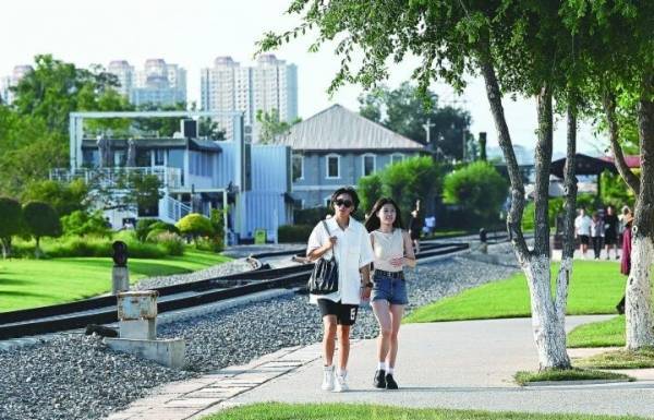 夏日里,纵横交错的老旧轨道周边,鲜花竞相开放,人们吹着海风、悠闲漫步,聆听足下与木栈道发出的声响,或徜徉在舒缓的音乐里,独酌一杯咖啡,享受这海滨城市独有的欢愉……曾经的百年老港,如今“变身”成为港城的热门打卡地。