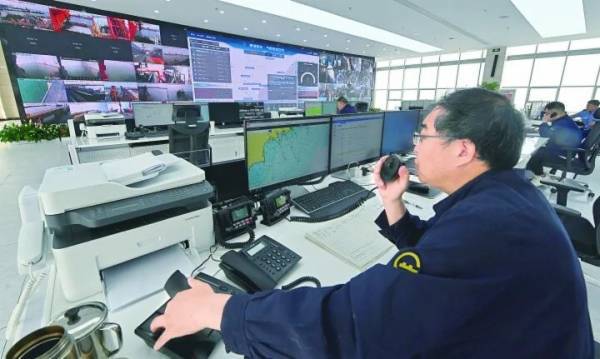 秦港股份“一中心三平台”智慧化管理系统办公现场。