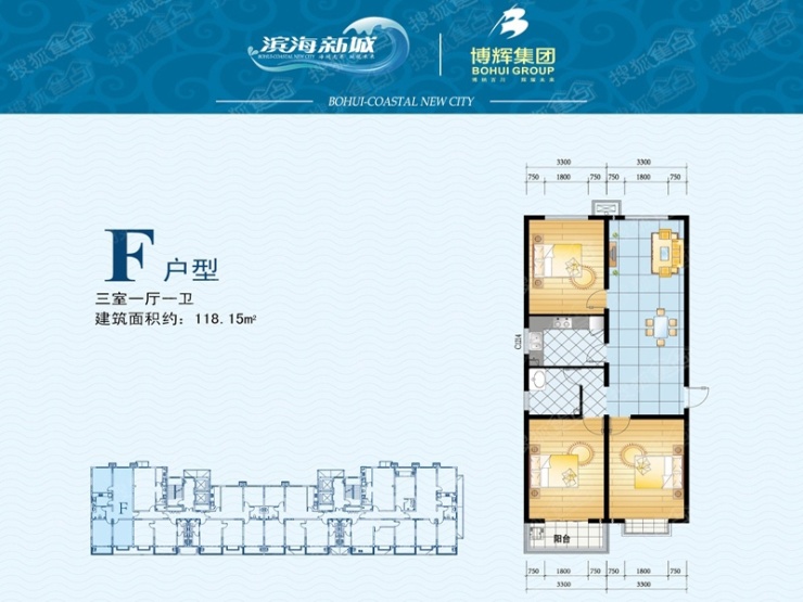 蔚蓝海岸洋房17000元/平米,户型面积85-95平米;