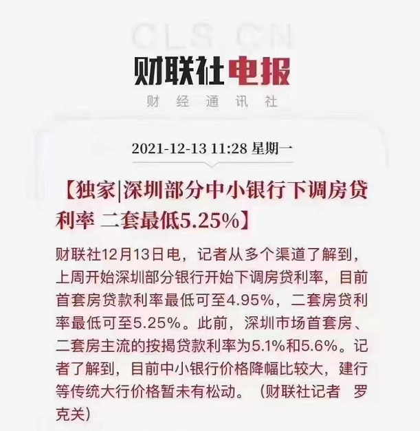 中证君了解到,近日,有部分中小银行下调了深圳地区的房贷利率,首套房贷款利率较低可至4.95%,二套房贷利率较低可至5.25%。不过,占据房贷按揭市场绝大部分份额的国有大行,目前并未跟进下调房贷利率。