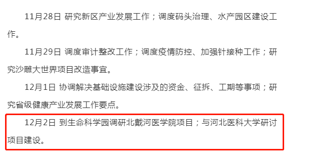 2021年12月,北戴河新区管委会主任调研北戴河医学院项目;与河北医科大学研讨项目建设。