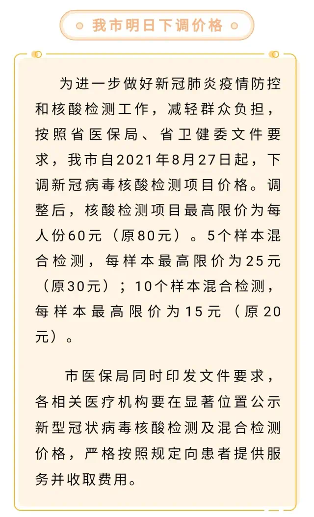 自2021年8月27日起,新冠病毒核酸检测项目价格下调,每人份最多便宜20!您做了几轮核酸检测了?