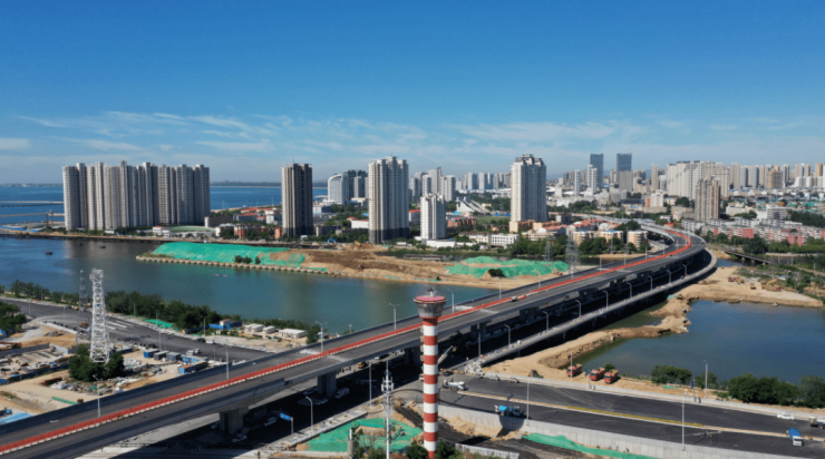 海滨路东西延伸工程是秦皇岛市历史上单体投资规模最大、技术含量最高的市政桥梁工程,也是河北省2020、2021年连续两年的重点项目,有较高的社会关注度。市委、市政府高度重视,连续三年将其列入民生实事重点保障推进。该工程于2019年3月开工建设,在各方共同努力下,攻坚克难,运用“等截面钢箱梁、变截面钢箱梁使用,跨铁桥梁挂篮悬浇工艺,混凝土试块植埋芯片电子监控”等新技术、新工艺,统筹施工进度和质量安全,在秦皇岛市政桥梁建设中实现了多项零的突破。