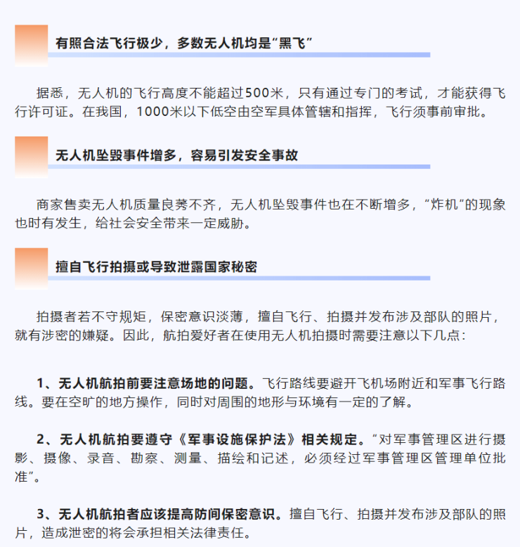 为进一步加强低空慢速小目标航空器的管控,严密防范利用低空慢速小目标航空器进行干扰破坏活动,切实维护我市空域安全,根据《中华人民共和国飞行基本规则》《通用航空飞行管制条例》等有关法律法规,市政府决定,自2023年7月1日0时起至2023年8月31日24时止,禁止一切单位和个人在我市空域内利用无人机、“穿越机”等低空慢速小目标航空器开展“民航、森林、农业、科研、宣传、商业、娱乐、试验、比赛、航拍”等活动。现将有关事项通告如下: