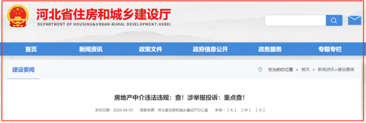 河北省住建厅印发《关于开展房地产中介机构专项整治的通知》要求全省各地对房地产中介机构(含销售代理机构、网络信息平台)及从业人员的销售、租赁等行为进行全面排查整治,尤其对有投诉举报的,要重点整治!