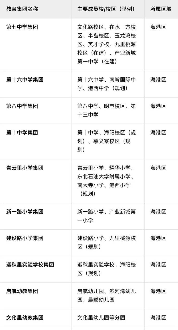 下面整理了海港区的11个教育集团以及成员学校:
