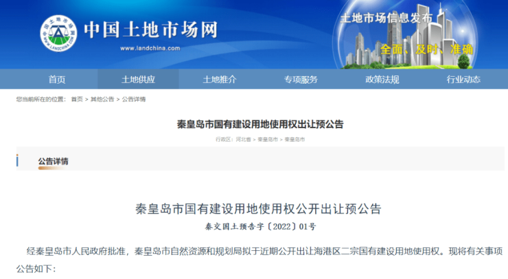 秦皇岛半岛片区两宗宅地预出让!楼面价较低2900元/㎡