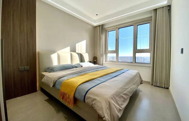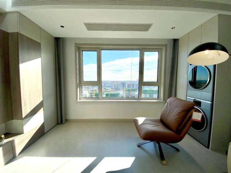 向南拥揽万亩森林大海盛景,向北遥望连绵巍峨燕山山脉,女主人每日于阳台窗前远眺海景、近观林海,满眼翠绿与蔚蓝,惬意生活与好心情常伴左右。