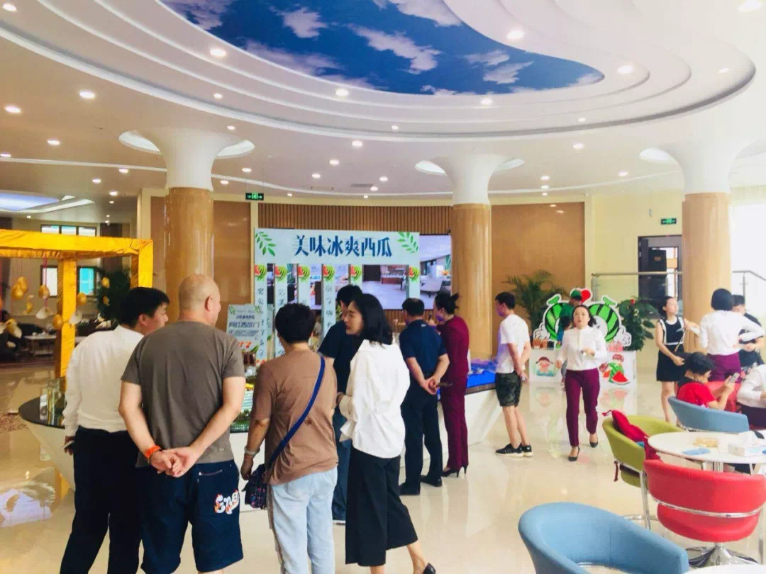 进入活动现场,映入眼帘的就是漂亮的签到礼仪,前台摆放着精致的西瓜雕刻。