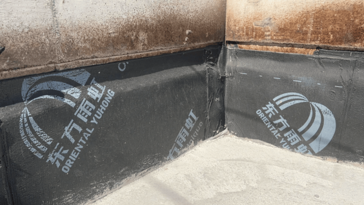 项目顶层防水材料使用的是大品牌东方雨虹,这是一种高弹性丙烯酸防水涂料,具有粘结力强、耐磨性好、抗开裂、耐老化、强度高等特点。