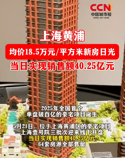 上海项目“潮鸣东方”以每平方米19.5万元的价格开盘,其120套房源于开盘当日即告售罄;