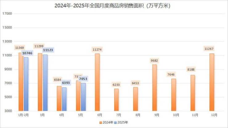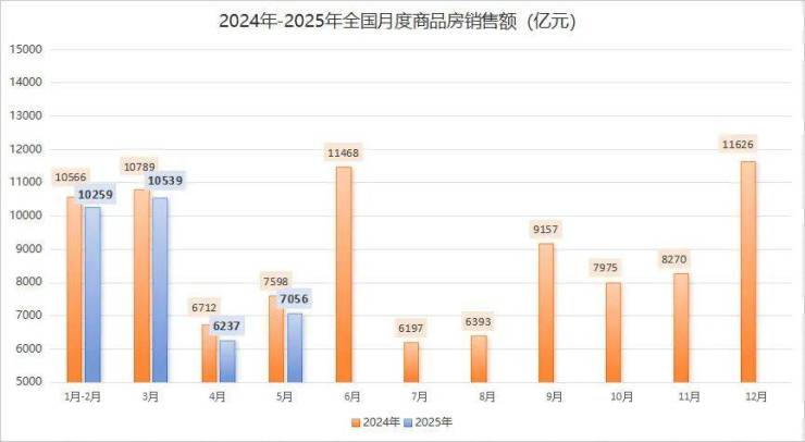 2025年1-5月新建商品房销售额34091亿元,下降3.8%;其中住宅销售额下降2.8%。