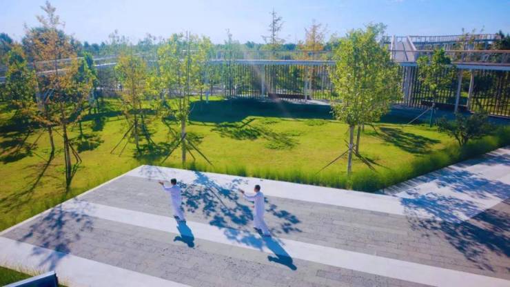 迎着朝阳打打太极、沿着跑道慢跑