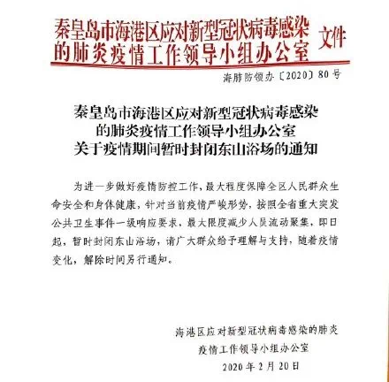 为较大限度减少人员流动聚集,我市暂时封闭东山浴场,解除时间另行通知。