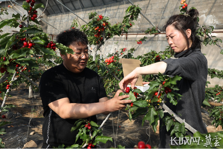 果农正在采摘大樱桃。山海关区委宣传部 郑丽 摄