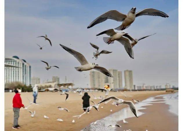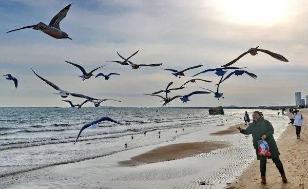央媒聚焦丨河北秦皇岛:海鸥觅食 美景如画